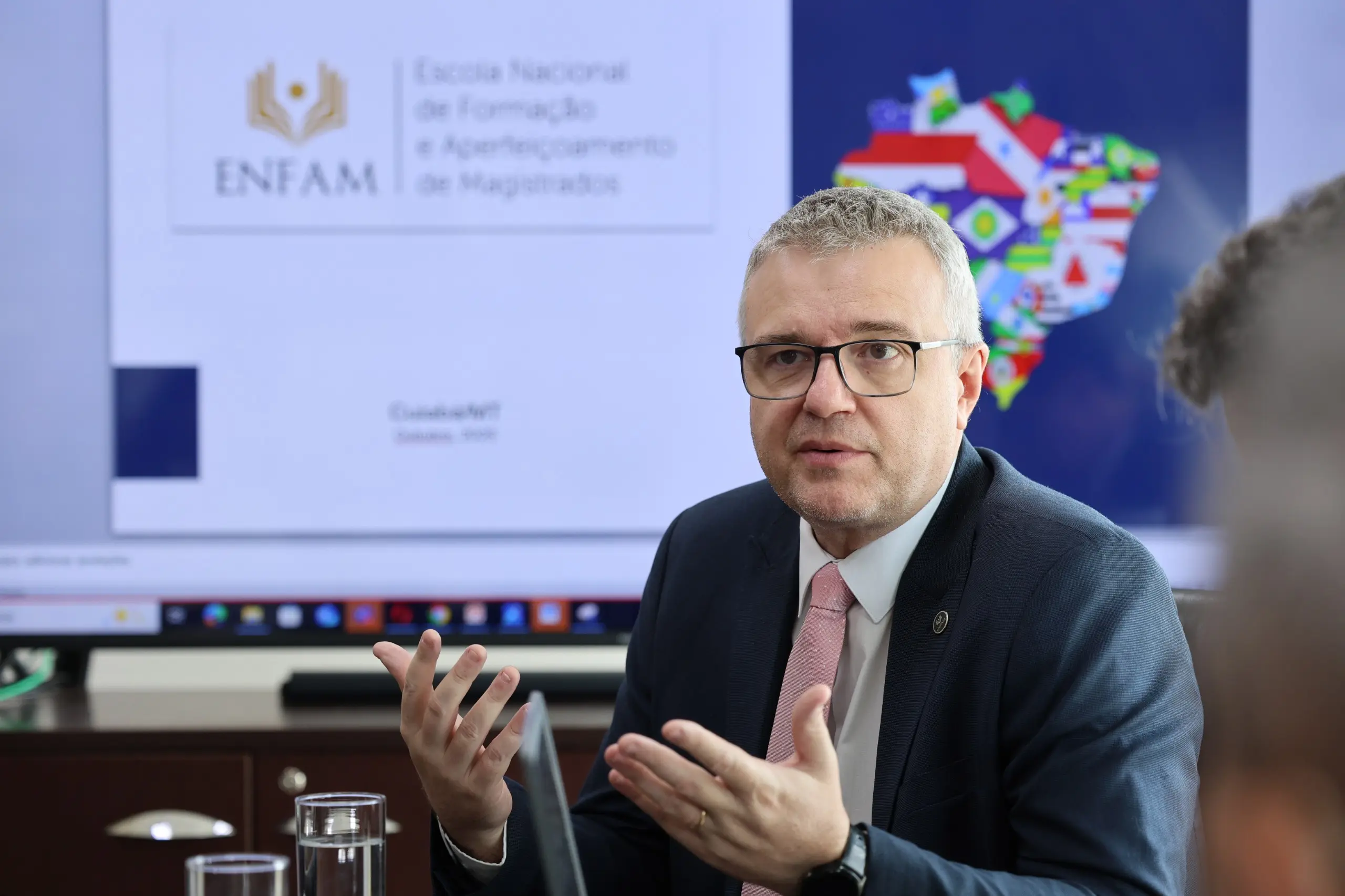 O presidente da Enfam, ministro Benedito Gonçalves, participou virtualmente do encontro. Ele ressaltou que a visita não tem cunho fiscalizatório, pelo contrário, busca cooperação e integração com as escolas do Brasil inteiro. “Nós transformamos a ideia normativa de fiscalização dos cursos iniciais, de formação e capacitação continuada. Eu vejo as 27 escolas estaduais e as seis federais nesse mister constitucional. O que fazemos é esse contato em forma de informação e de intercâmbio de ideias, ações extremamente importantes. Essa ação dialogal eu comecei ainda quando estava no Tribunal Superior Eleitoral.”
